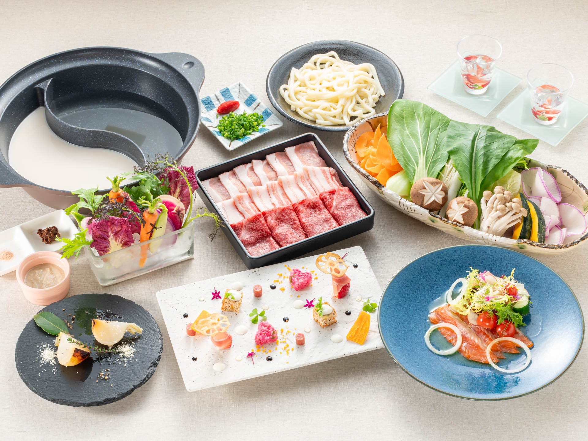 和牛・那須三元豚と地場産野菜のしゃぶしゃぶ